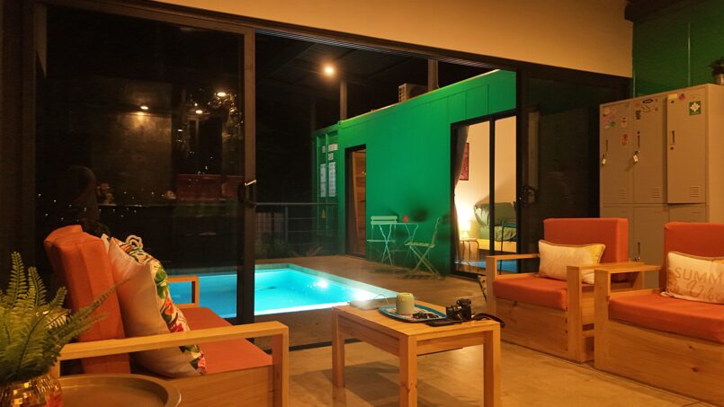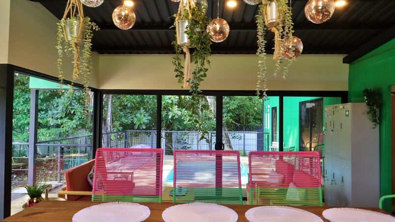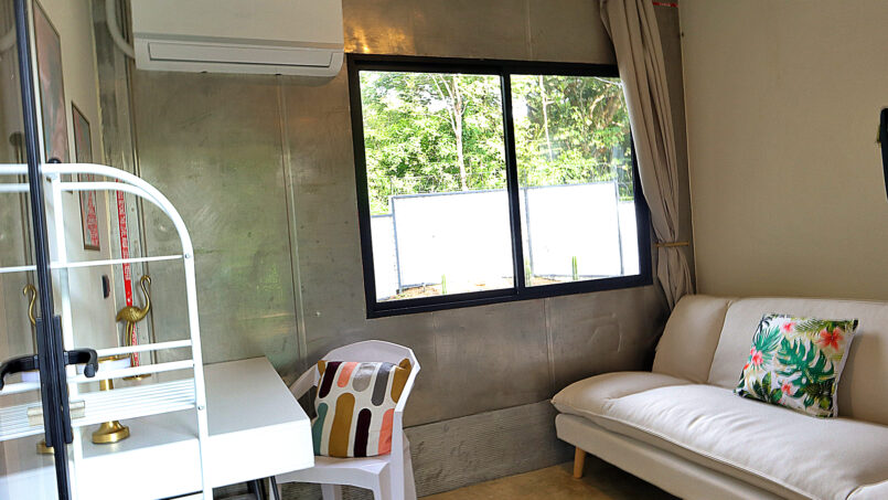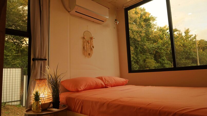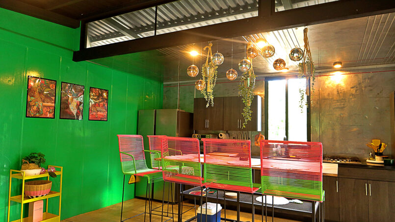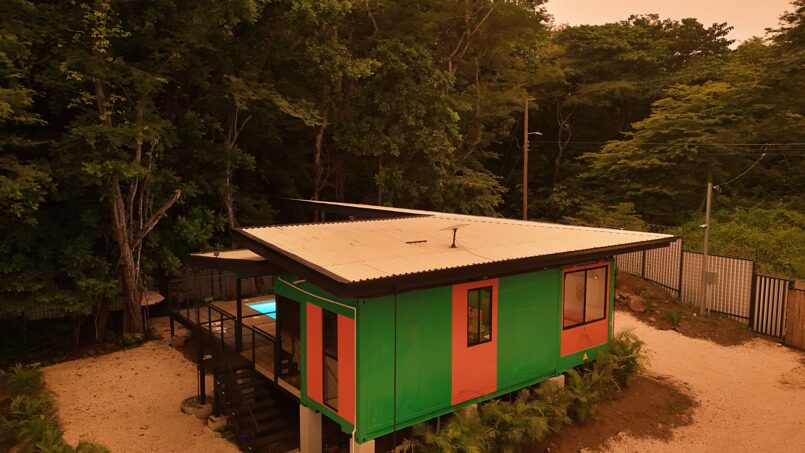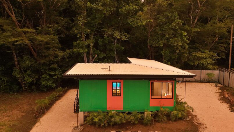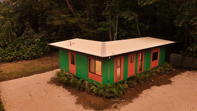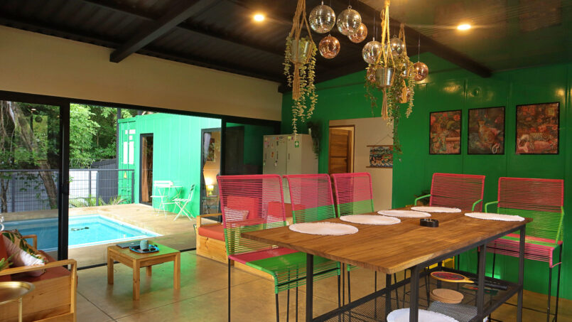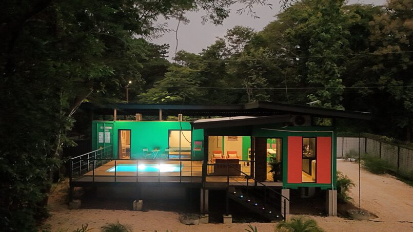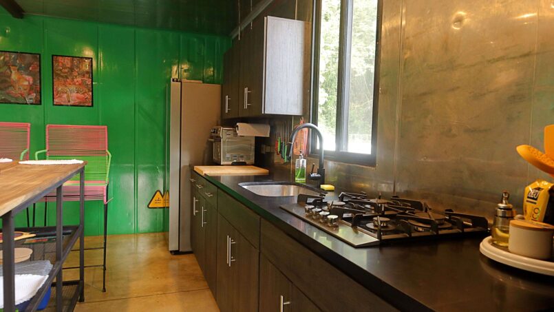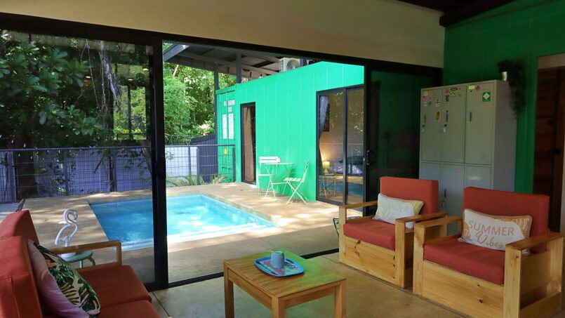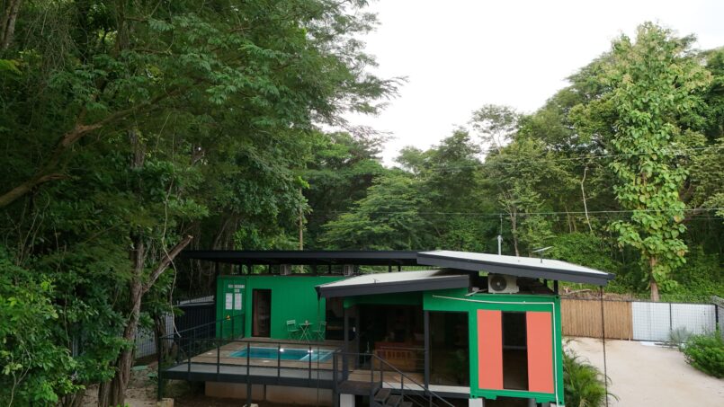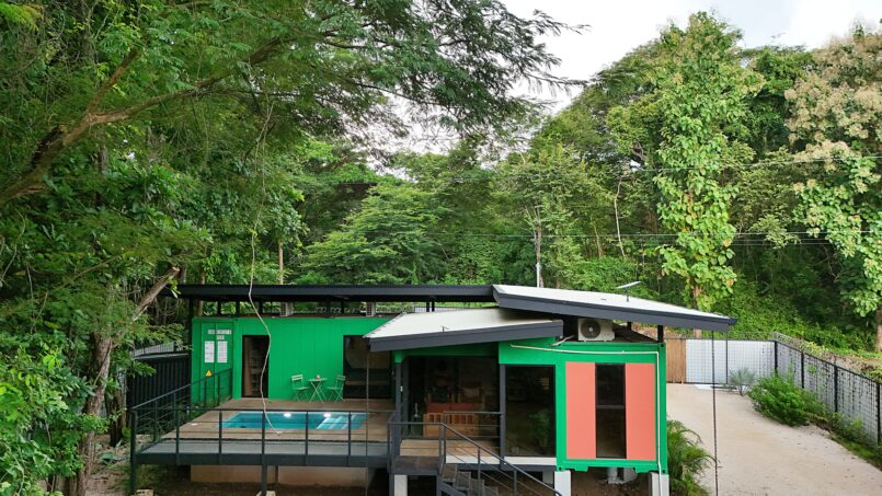 Escape to this unique modern jungle container home, surrounded by lush nature and the soothing sounds of a nearby river—especially magical during the rainy season. This spacious retreat features 3 bedrooms and 2 bathrooms, a fully equipped kitchen with a large island, and a cozy living area with comfortable seating. Floor-to-ceiling windows invite the jungle inside, filling the home with natural light and views of the vibrant flora and fauna.