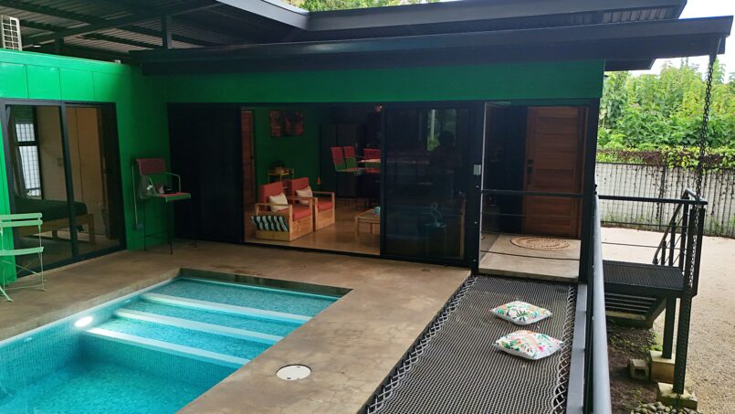Step outside to your private pool with jungle views, a sunny terrace, and a net hammock where you can relax under million of stars at night while listening to the sounds of nature. Enjoy modern comforts including air conditioning throughout, Starlink Wi-Fi, a Bluetooth speaker, and board games for family fun.